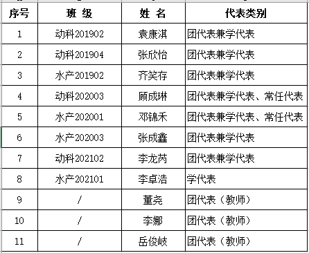 经学院代表选举工作委员会召集代表会议,对代表候选人预备人选进行充分酝酿、民主投票,报经学院党委审批同意,确定以下同学为正式代表人选,现将名单予以公示: