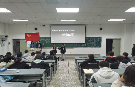 随后,动科202001班团支书郑千里上台带领大家研习习近平总书记关于辛亥革命的讲话,生动的讲解加深团员们对中国文化与精神的认同感,坚定文化、道路自信,从而为接下来的党史校史竞答做好了铺垫。