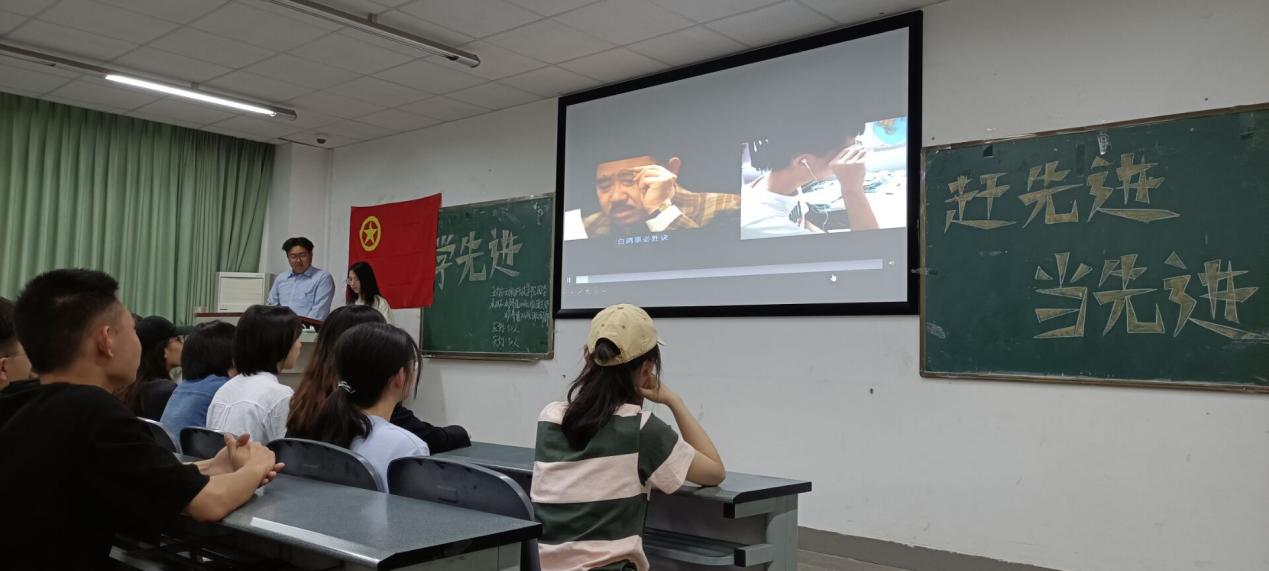 在活动前期,由两个支部的同学自愿组成配音小组,进行电影《风声》的配音活动,感受革命先烈们的爱国精神。来自水产2003班的游富淇同学再现了电影《1919》中大使顾维钧拒签巴黎和会上丧权辱国条约的历史性时刻,让同学们再次燃起满腔热血,以拳拳之心体味五四精神。通过精彩绝伦的演绎,主题团日活动走向高潮,支部同学也因此进一步感悟到经典影视背后的真挚情感。活动的最后,主持人表示:“奋斗是青春最亮丽的底色。青年一代有理想、有本领、有担当,国家就有前途,民族就有希望。作为新一代的追梦人,我们要带着五四的精神,继续奔向更加美好的未来!”