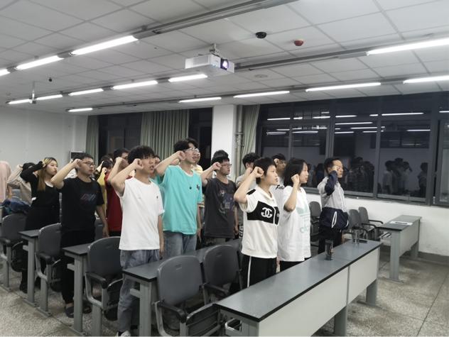 在主题团日活动中期的“薪火相传话青年”中,水产202002的石浩同学一名参军入伍大学生的身份给同学们带来诚挚的寄语:“青年应该是有梦想,无所畏惧,我们要拒绝平庸,永远保持昂扬的斗志。”该番话引发同学们再度深思关于当代青年人如何为祖国发展贡献力量”的话题。最后,主持人带领全体同学重温了共青团入团誓词,活动在团歌声中落下帷幕。