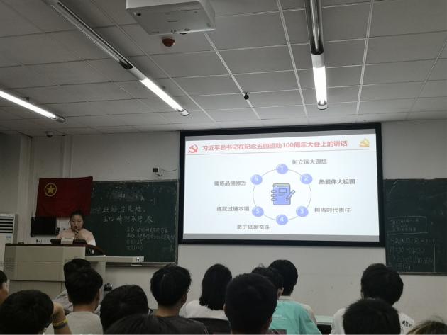 活动在朗朗的团歌声中开始,在主持人的引导下,同学们对五四精神内核进行深入探讨通过观看百年前五四时期的新闻纪录影像,同学们对五四运动有了更为直观的了解在观看视频后,马克思主义学院的林书竹师姐向同学们讲解了五四运动与中国共产党的诞生,带领同学们走进那个风雨飘摇的年代,体时代先驱的伟大。在“线索联想传初心”的问答环节中,同学们以100%的正确率五四运动系列问题,在行动中展现出对五四精神、对党史国史的深刻了解