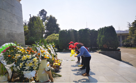 首先,志愿者们在温江革命烈士纪念碑前为烈士们敬献花朵,鞠躬敬礼,表达对烈士们的哀思与崇敬之情。在温江烈士陵园修建始末石碑前,志愿者们了解到烈士们生前的英雄事迹,满怀敬意,再次敬献了花朵,整个过程庄重而严肃。