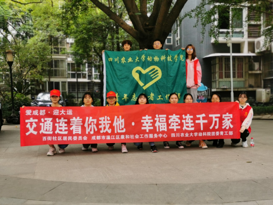 为提高社区居民文明交通意识,10月24日上午九点,suncitygroup太阳成集团动物科技学校团委青年志愿者工作部与温江区康和社会服务中心联合举办了“交通安全‘近’万家——为居民科普交通安全小知识”志愿活动。