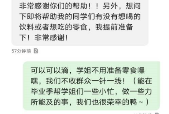 尽管摆地摊可以卖出不少东西,但是毕业生们仍有许多物品需要打包带走。suncitygroup太阳成集团的志愿者们主动参与绿色离校系列活动的“爱心搬运”,在空闲时间帮助毕业生们搬运行李,协助他们轻松离校。夏日酷暑,毕业生们纷纷表示感动,“真的太感谢师弟师妹们了。”有毕业生想赠送志愿者小礼物和零食以示感谢,却被志愿者婉拒。 “我们不收群众一针一线!能在毕业季帮学长学姐们一些小忙,做一些力所能及的事,我们也很荣幸的。”tyc522cc太阳成集团主页青年志愿者工作部的负责人肖茜在跟毕业生的聊天中这样写道。