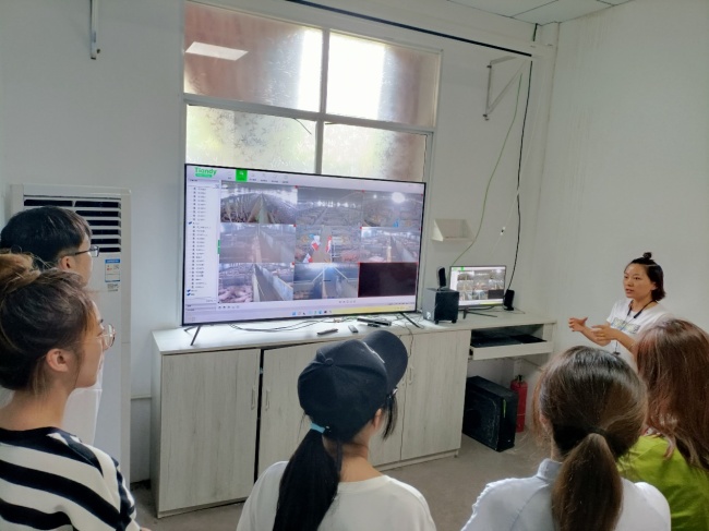自贡支队此行对7个现代化养殖场(种猪场、育肥猪场、肉牛场)、5个水产养殖场、6个农户家庭养殖场进行了实地调研,并与养殖场负责人、工作人员进行了深入交流。在调研自贡巴佑生猪养殖公司时,受生猪养殖周期影响,团队成员以远程观看监控录像的形式了解场内育肥猪生长发育情况。视频监控中,全自动化的机械设备、高标准化的生产模式为育肥猪提供最为适宜的生长环境。在谈及饲料配比时,农技人员通过妊娠母猪各期所需的采食量,在饲料内适量添加或减少相应的粗纤维与蛋白含量,有效提高育肥猪的各项指标。“精细管理与高效运营模式是标准化生产技术与规模化经营的基本支撑。”自贡支队负责人郑千里这样感叹道。