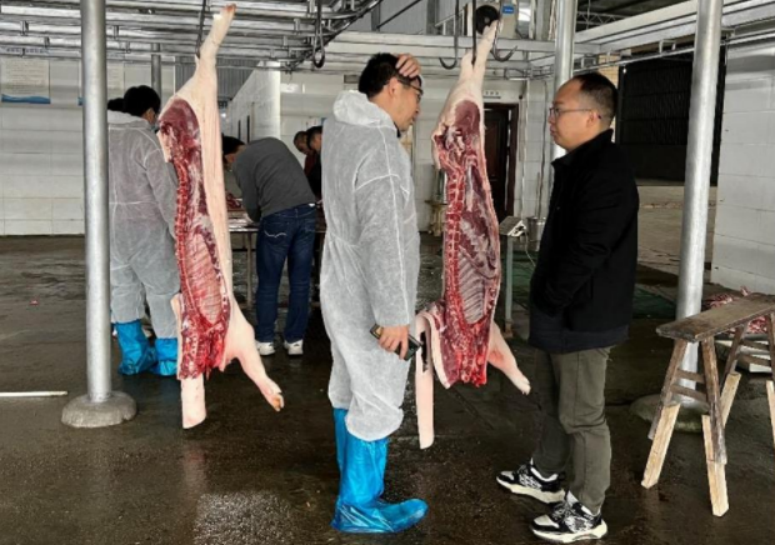 同学们在朱砺教授的带领下与四川德康农牧食品集团股份有限公司负责人首先就天府白猪培育过程中存在的问题以及未来规划进行了深入交流,随后在内江市资中县对18头天府白猪基础群体的胴体性能和肉质性状进行了系统评价,测定了屠宰率、瘦肉率、肉色、肌内脂肪含量等60余项经济性状指标。