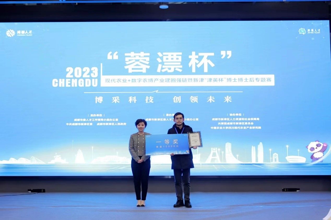 3月28日,2023成都“蓉漂杯”现代农业+数字农博产业建圈强链暨新津“津英杯”博士博士后专题赛决赛圆满落幕。通过激烈角逐,学院在读博士杨喜堤团队的项目《一站式大数据猪育种服务商》荣获桂冠。