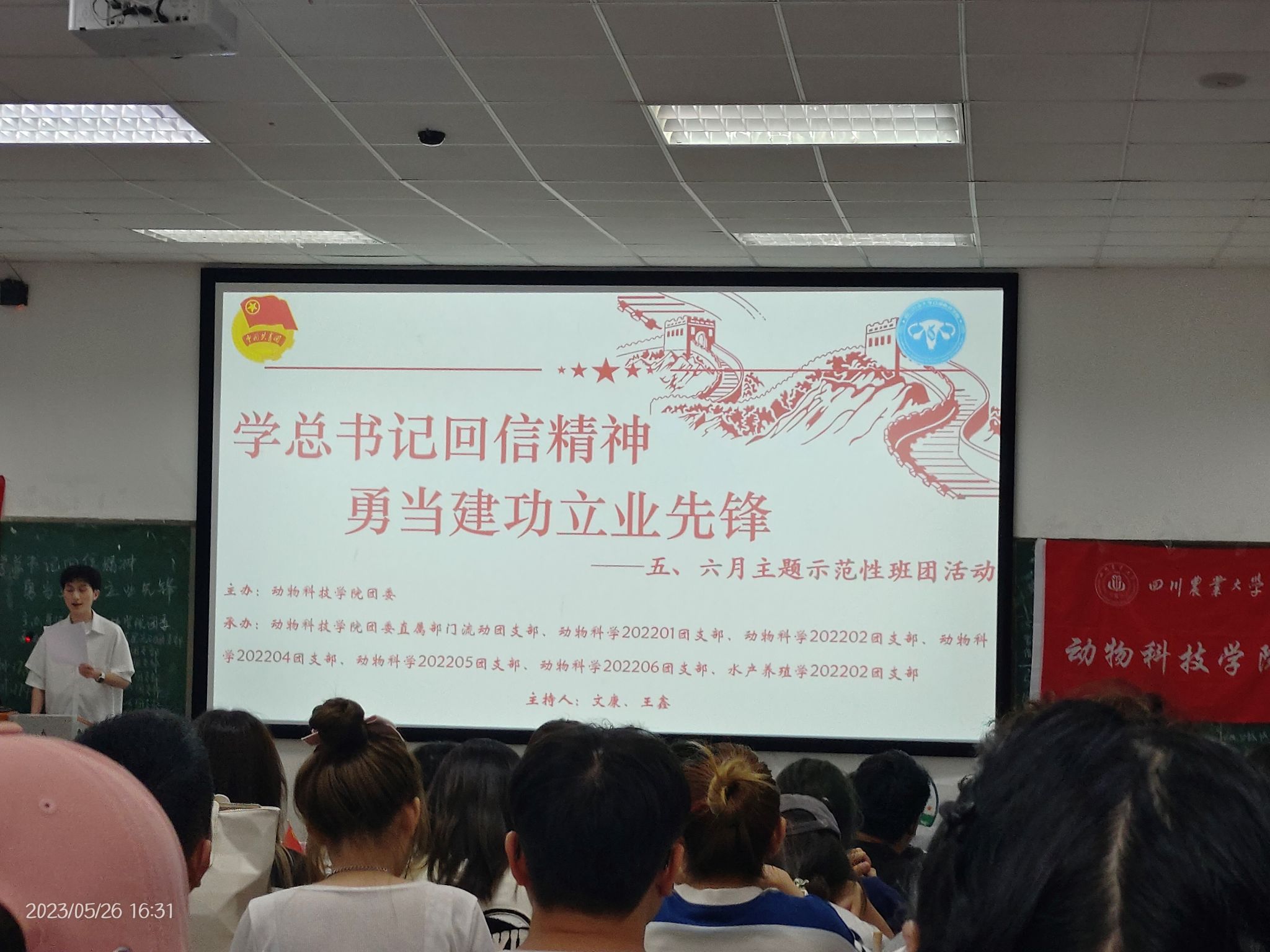 为深入学习“习近平总书记给中国农业大学科技小院的学生回信”的精神,让同学们深刻了解“厚植爱农情怀、练就兴农本领”的重要性,tyc522cc太阳成集团主页团委直属部门流动团支部、动物科学202201团支部、动物科学202202团支部、动物科学202204团支部、动物科学202205团支部、动物科学202206团支部以及水产养殖学202202团支部于2023年5月26日在4a-108联合举办“学总书记回信精神,勇当建功立业先锋”示范性班团活动。