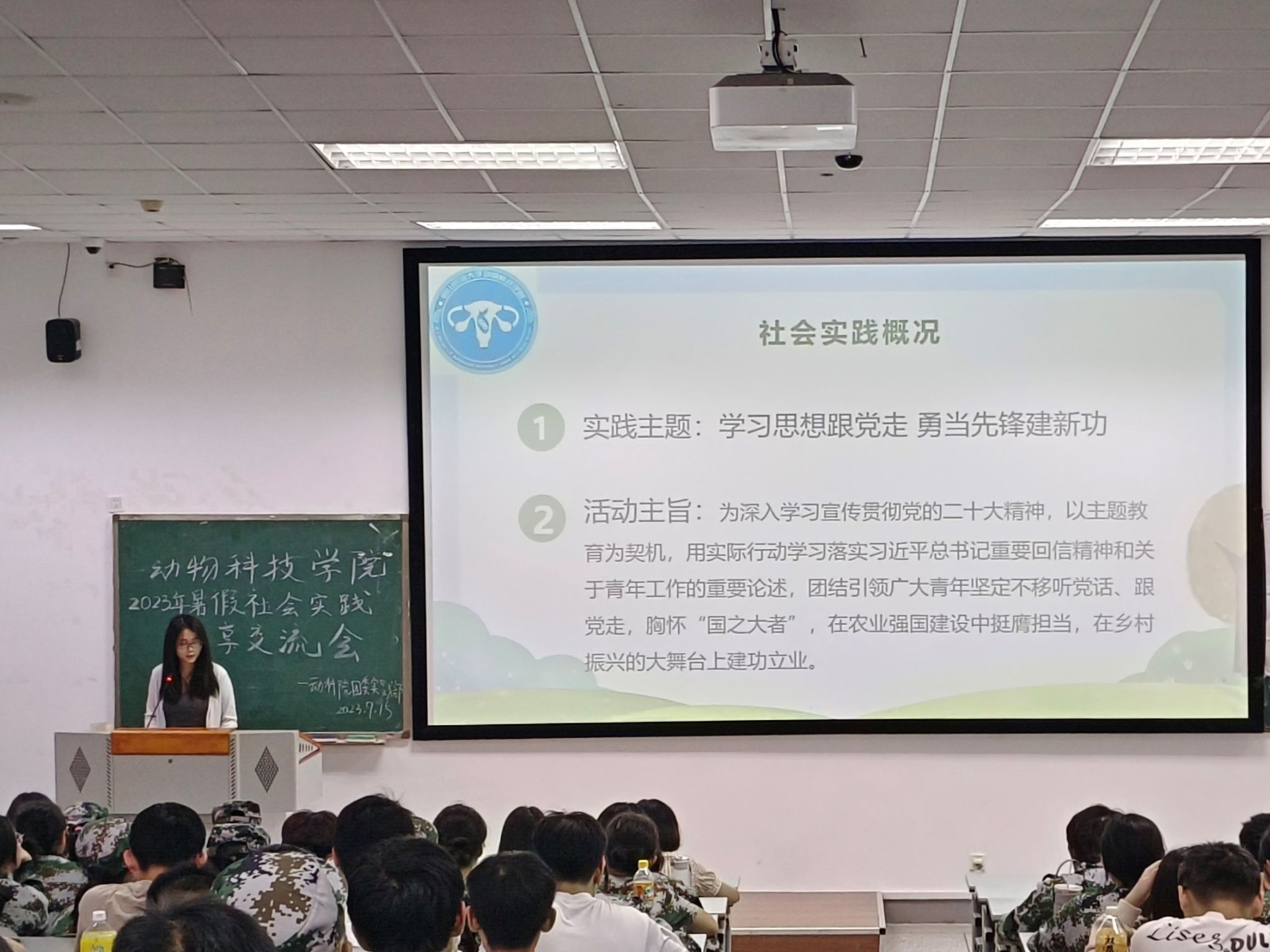 本次tyc522cc太阳成集团主页暑期社会实践总结交流会圆满结束,全院同学结合专业、学科知识,将理论联系实际,用实际行动践行和诠释了新时代大学生的责任与担当,展现了动科人饱满的精神面貌。