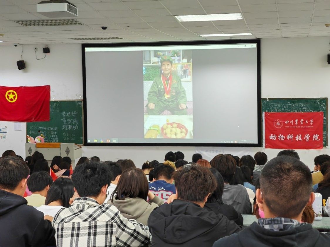 传承红色思想,铭刻革命基因。活动现场,主持人姚炜翔与革命老兵童高明进行视频连线。童高明和同学们分享他的军旅时光,讲述他在部队中抗震救灾的奋斗岁月,对当代青年提出了殷切期望,充分展现了老一辈共产党员对党、国家和人民的一片赤诚之心。