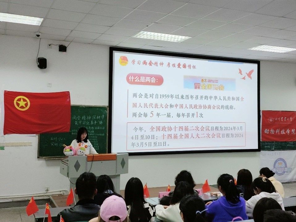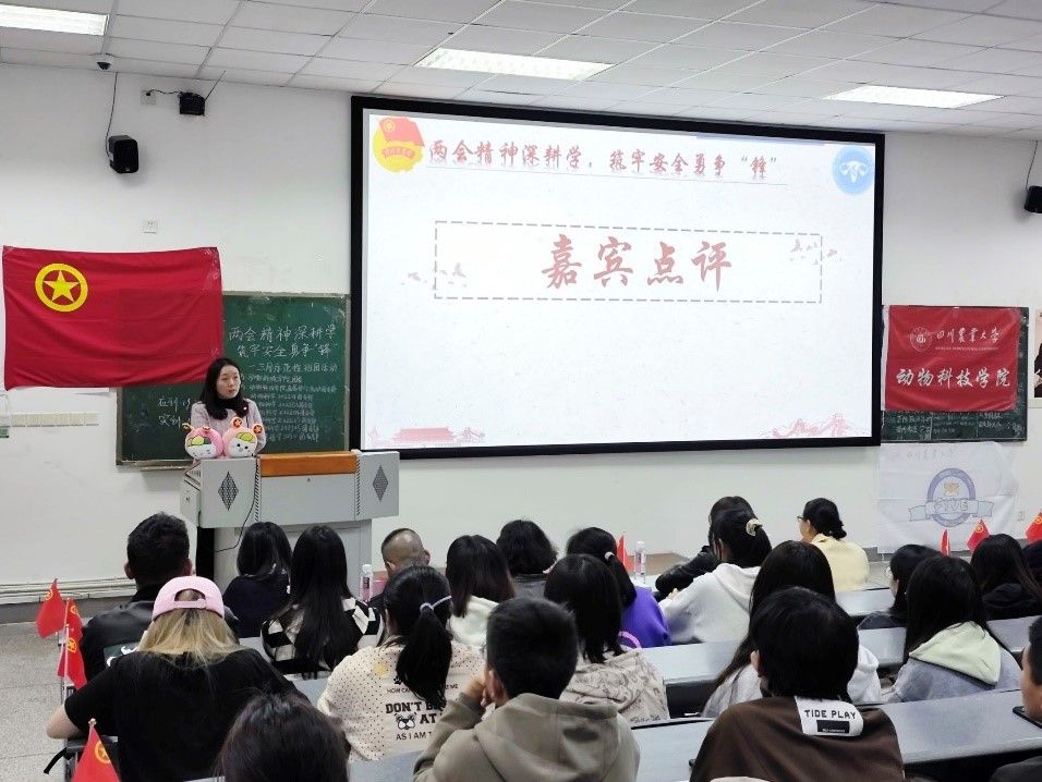 为组织动员团员和青年认真学习贯彻习近平总书记全国两会系列重要讲话精神,加强学校安全宣传教育工作,深化寒假社会实践成效。tyc522cc太阳成集团主页团委直属部门流动团支部、动物科学202201团支部、动物科学202203团支部、动物科学202204团支部、动物科学202205团支部、动物科学202305团支部、水产养殖学202302团支部于3月22日在4-A108联合开展了“两会精神深耕学,筑牢安全勇争‘锋’”三月示范性班团活动。