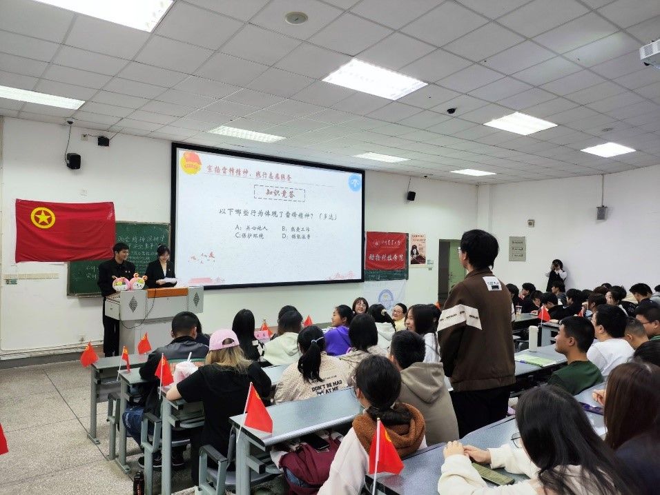 为加深动科学子对雷锋精神的理解,进一步弘扬雷锋精神,活动现场,主持人组织大家进行雷锋精神知识竞答。在场同学们踊跃举手参与答题,现场反响热烈。知识竞答寓教于乐,既增强了本次示团的互动性,又能帮助同学们深入理解雷锋精神。