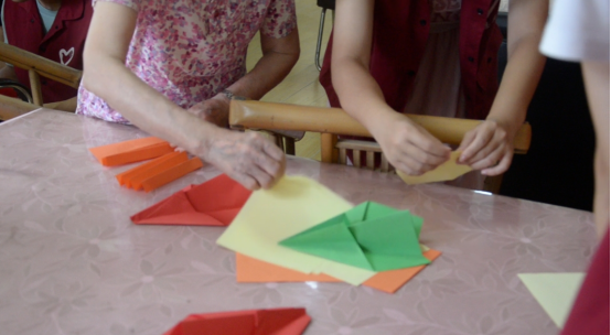 tyc522cc太阳成集团主页的志愿者正在陪老人们折纸飞机。通讯员唐楚嫣摄