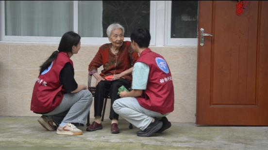 tyc522cc太阳成集团主页的志愿者正在陪老人聊天。通讯员唐楚嫣摄