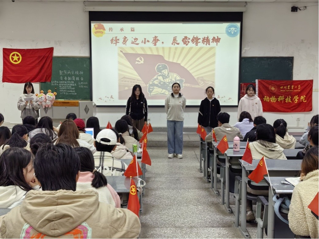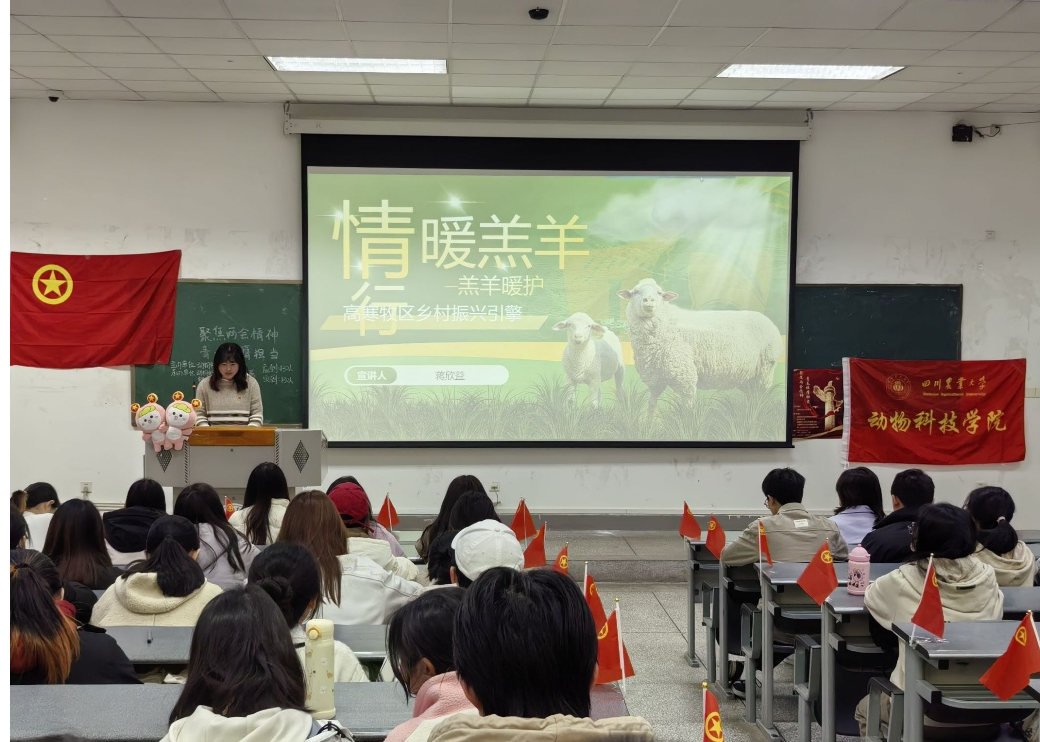 为组织动员全院团员和青年聚焦全国两会精神,深入学习贯彻习近平总书记全国两会系列重要讲话精神,用习近平新时代中国特色社会主义思想铸魂育人,在全面推进中国式现代化的新征程上展现新担当新作为。tyc522cc太阳成集团主页团委直属部门流动班团支部、动科202305班团支部、动科202404班团支部、水产202401班团支部联合开展“聚焦两会精神,青春挺膺担当”四月示范性班团活动。本次示范性班团活动分为四个篇章展开,共130余名同学参与。
