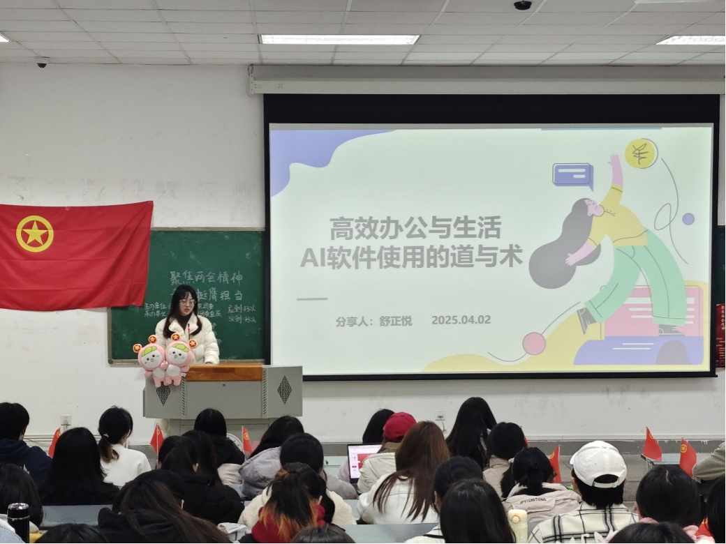 “智启新生活,慧联未来路”。随着人工智能技术的飞速发展,AI正以前所未有的力量深刻地重塑我们的生活、学习与工作模式。学院党委办公室副主任、团委副书记舒正悦老师以《高效办公与生活AI软件使用的道与术》为题,为同学们精彩分享了AI运用的前沿知识,极大地拓宽了同学们的科技视野,使同学们深刻认识到先进技术在未来发展中的不可或缺性。