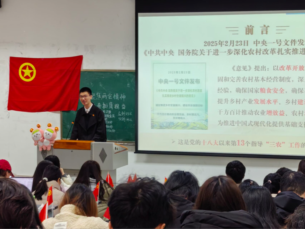 “青马领梦航,兴农正当时”校青马班曹星宇同学解读有关中央一号文件内容精神,引导同学深刻领悟习近平总书记关于“三农”工作的重要论述和重要指示精神。同时强化思想政治引领,激发广大团员和青年投身农村、建设农村、振兴农村的热情,为中国式现代化夯实基础。