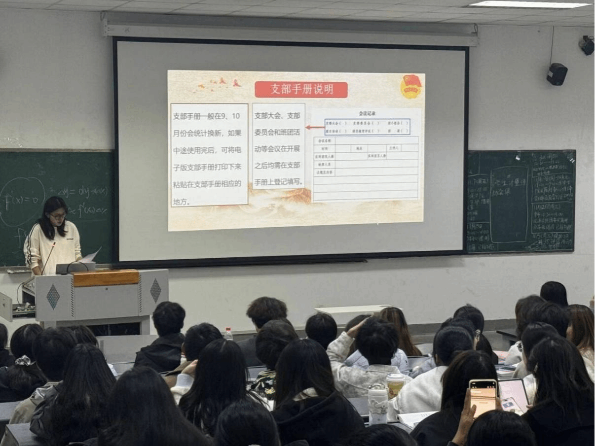 会上,首先对团务基础工作规范进行了细致讲解。针对支部手册填写,培训详细解读了填写要求,明确支部大会、支部委员会、团小组会和团课等各类会议记录的规范填写方法,强调记录需兼具完整性与准确性,确保各项团务工作有迹可循、有据可查。在智慧团建与团务用品管理方面,培训重点讲解了系统操作流程,涵盖会议记录录入、团员信息更新、团组织关系转接及团内激励等核心环节,同时详细明确团旗、团徽的借用流程与保管标准,确保团务用品使用合规、存放妥善。