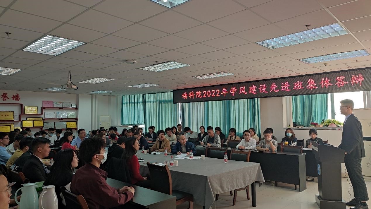11月4日下午,学院2021-2022学年学风建设先进班集体答辩和2022级优秀学风建设方案班集体答辩在7教1011会议室举行,学院党委书记付瑞琼、水产养殖系主任姜俊教授、学院行政办公室主任沈蕾、党委办公室全体老师出席并担任评委。全体2022级班主任、全体本科小班班委代表共计百余人参加本次活动。