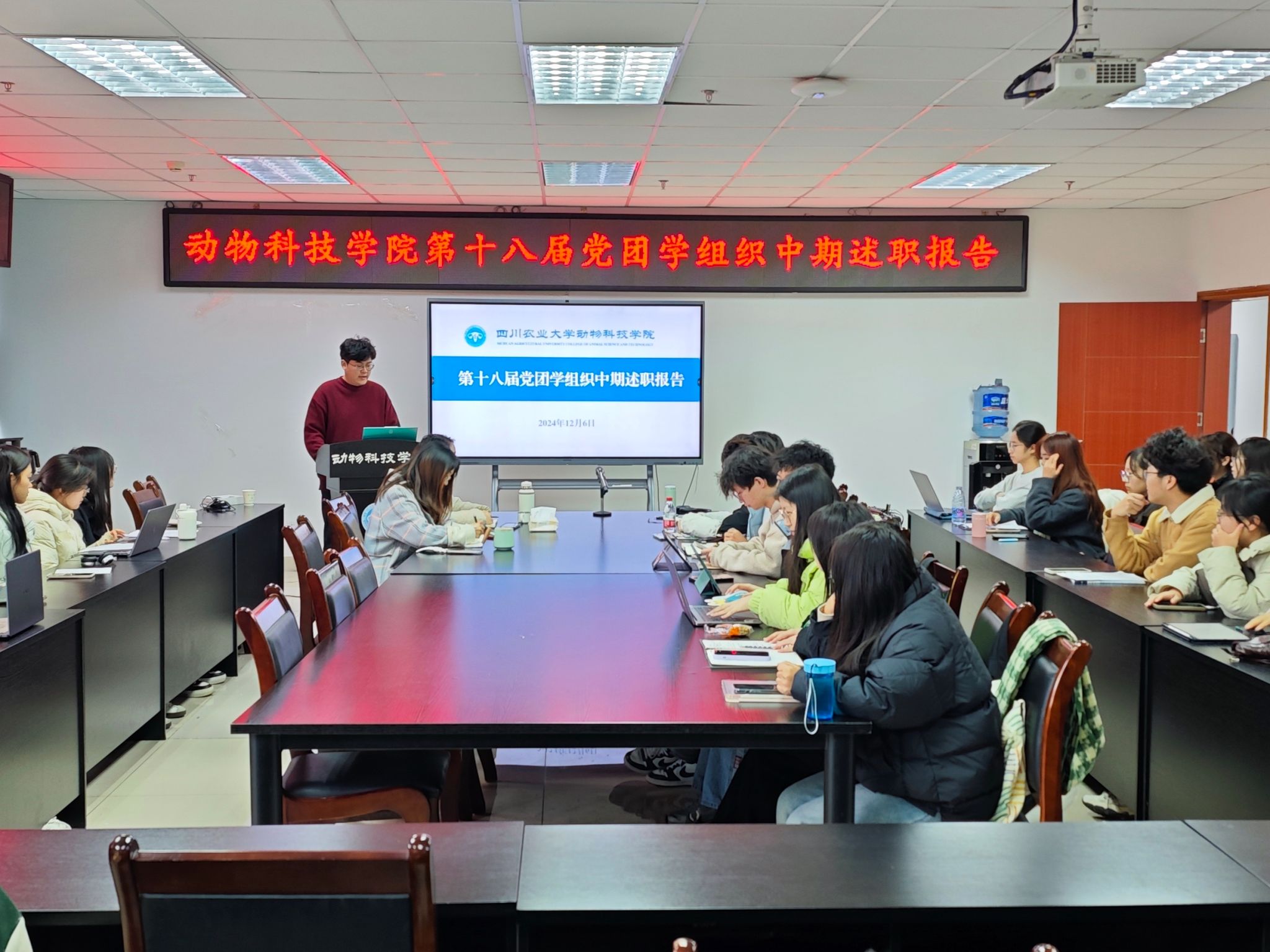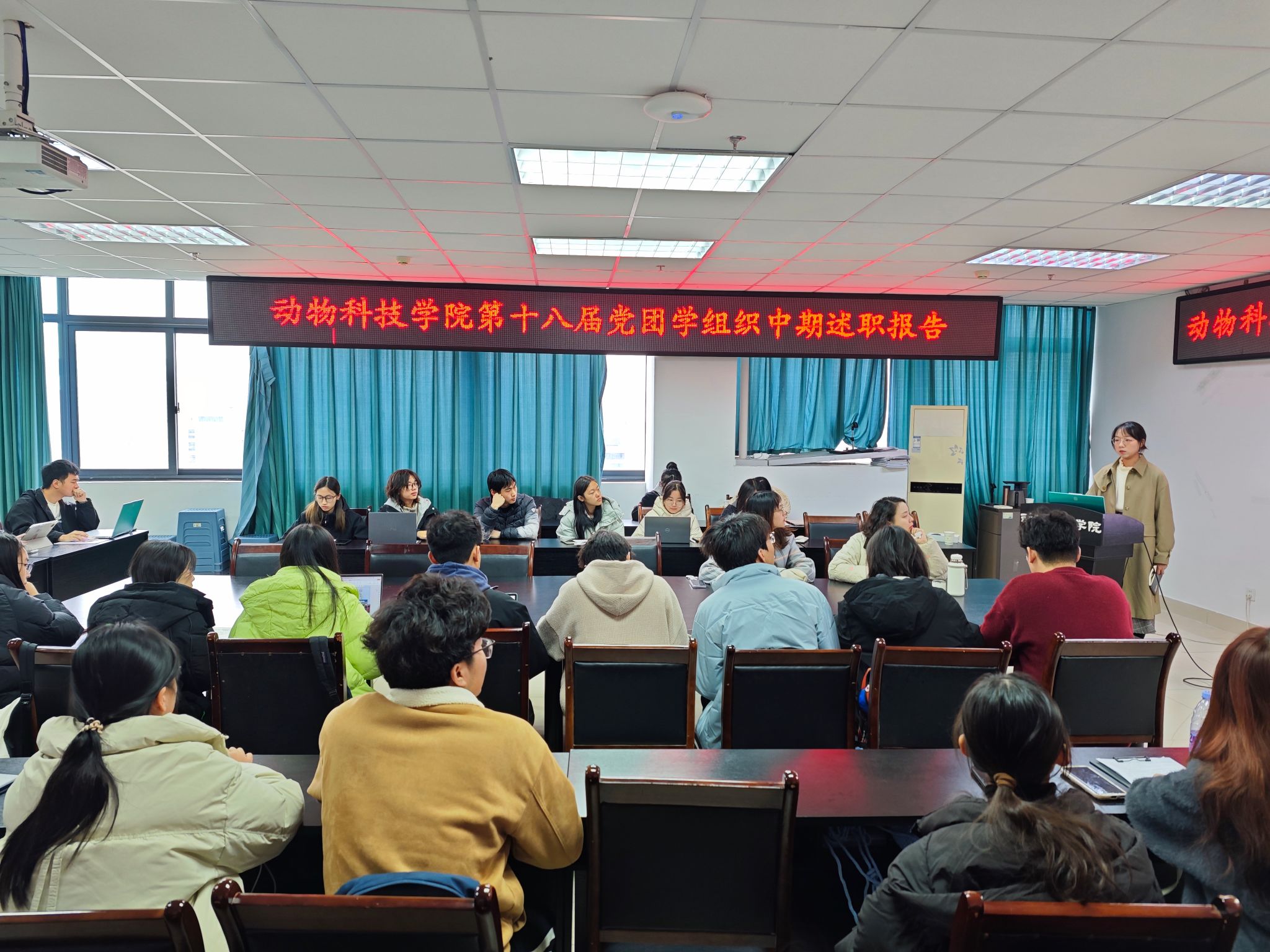 最后,学院党委办公室的三位老师分别对本次中期述职报告进行了点评,肯定了各部门工作的努力和成果,并指出了学生工作中需要共同改进的部分,希望各位党团学组织学生骨干能够将本次大会上的内容逐步落实,在接下来的学生工作中继续努力,共同书写出动科院党团学大家庭更加美好的篇章。