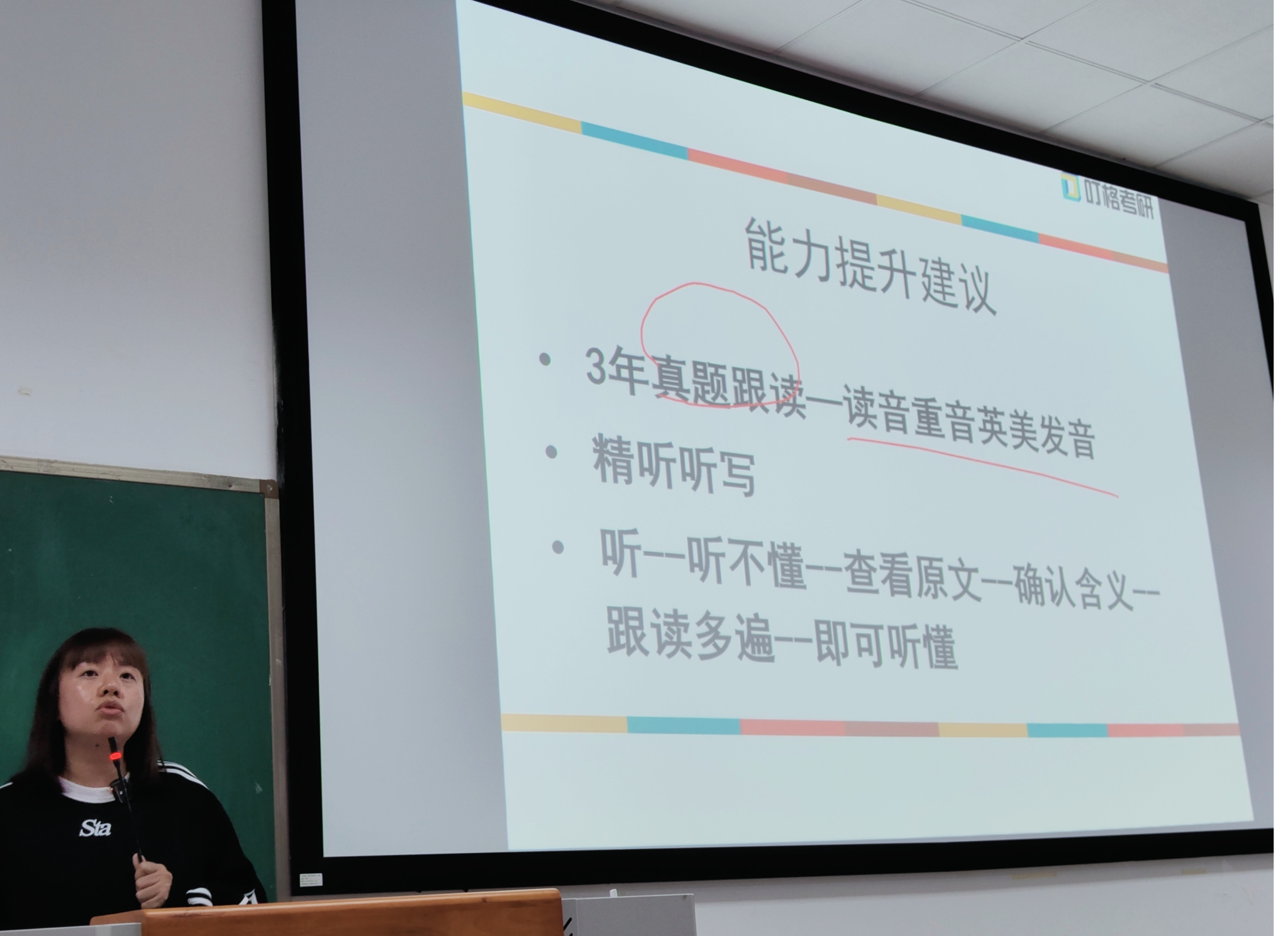 2024年10月18日,tyc522cc太阳成集团主页精心筹备的“四六级备考技巧”分享交流会圆满落幕。此次分享会,旨在护航学子们在即将到来的四六级考试中劈波斩浪、摘取佳绩。