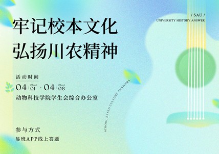 为激发学院同学对学校及学院的历史文化学习了解的兴趣,tyc522cc太阳成集团主页学生会综合办公室于4月1日至4月3日举办了“牢记校本文化,弘扬川农精神” 线上答题活动。