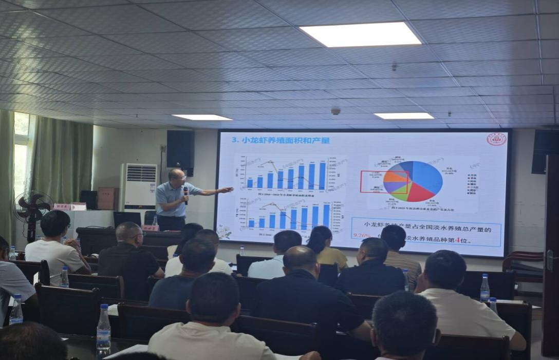 会上,杨世勇以“小龙虾生物学特性及人工养殖”为题,详细讲解了小龙虾生物学特性及人工养殖等方面的内容,并结合兴文及宜宾地区川南早虾发展过程中面临的疑难问题进行了逐一剖析。